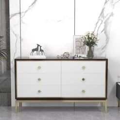 59.1″ Modern Bedroom Dresser With 6 Drawers Cabinet For Storage In Gold