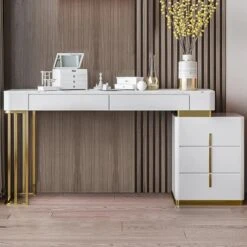 39.4″ White Marble Top Makeup Vanity With Drawers & 1 Cabinet