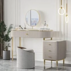 Chanor Makeup Vanity Set Mirrored Dressing Table With Jewelry Storage & Cabinet & Stool