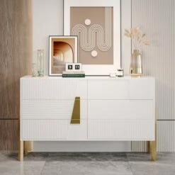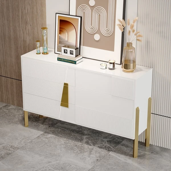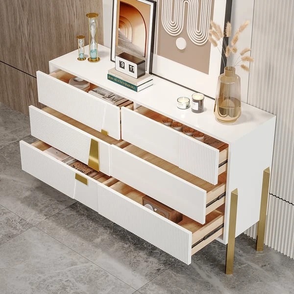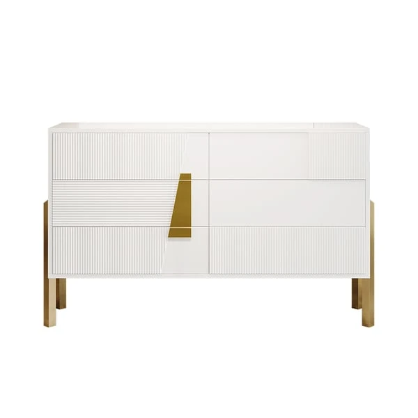 Indulge in the epitome of luxury with this captivating modern dresser. Prepare to be mesmerized by its stunning features and attention to detail. This dresser boasts six generously sized drawers, offering an abundance of storage space for your cherished belongings.