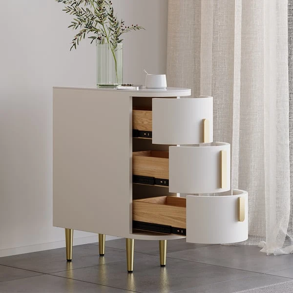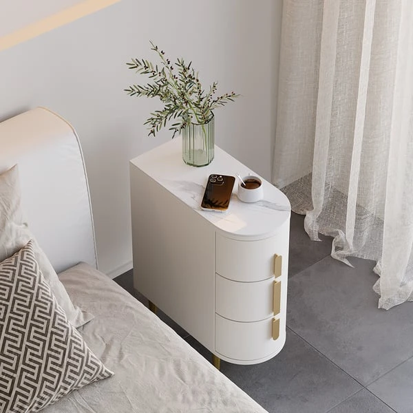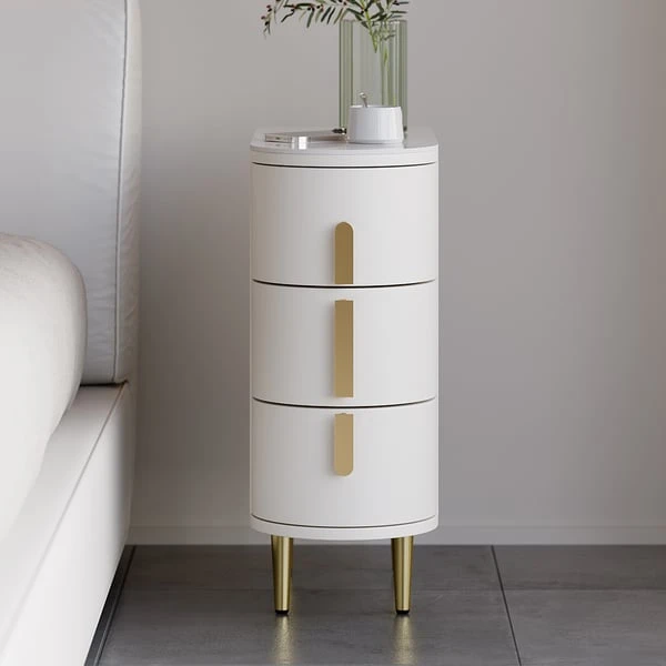 【Luxe Elegance】 Indulge in opulence and functionality with our exquisite White PU Leather 3-Drawer Nightstand, featuring captivating gold pulls that redefine sophistication. This nightstand is a masterpiece that seamlessly blends chic design and practicality, elevating your bedroom to new levels of style.