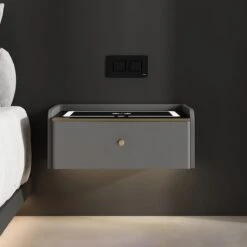 Modern nightstand in wood with a simple and luxury design that emphasizes versatility. Its circular arc edge design, whether facing outwards or toward the wall, gives the piece a visually delicate appearance. The velvet upholstered decor is at once luxurious and modern, elegant and casual. The nightstand is available in white choice, with a golden frame, you can take your home to the highest notch. The nightstand creates an excellent mood that will help you decor your home design. This nightstand is ideal for mixing and matching with other bedroom furniture to create a personalized sanctuary. In addition, it also can be utilized as a side table.