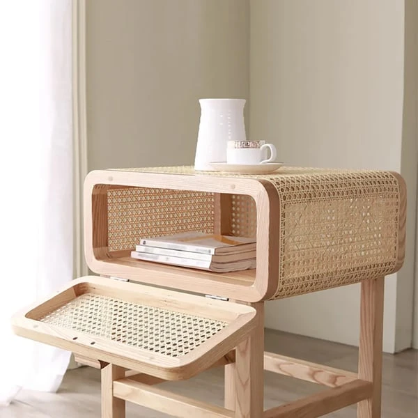 The rustic vintage nightstand with the drop-down door will endure captivating with its stunningly simple design for many more years. It is crafted from premium solid wood and rattan, making it a sturdy and environmentally friendly piece of furniture for the bedroom or living room. A durable frame and the exquisite rattan weave design make it a traditional yet unique nightstand that complements any room decor. Additionally, this nightstand provides enough space for a lush houseplant, as well as for all of your periodicals, books, and other miscellaneous items that can be placed and stored.